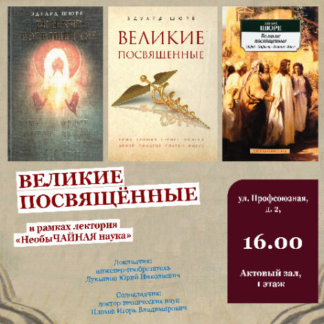 Отдел технико-экономической и сельскохозяйственной литературы приглашает на научно-познавательный семинар «Великие посвященные». Ждем всех 20 января в 16.00.