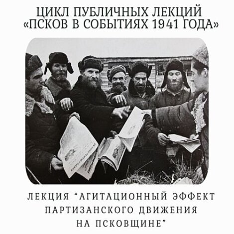 24 марта заведующий сектором научно-исследовательской работы Данила Чигаев расскажет об агитационном эффекте партизанского движения на Псковщине в годы Великой Отечественной войны.